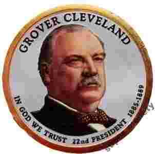 Description: Features an image of Grover Cleveland with the inscriptions "GROVER CLEVELAND," "IN GOD WE TRUST," "22nd PRESIDENT" and "1[zasłonięte]885-18."