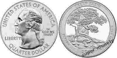 Reverse Designer: Ronald D. Sanders Engraver: Renata Gordon Description: Depicts the beauty and unique qualities of a single Bristlecone Pine tree and the rocky glacial moraines where the trees grow. Inscriptions are GREAT BASIN, NEVADA, 2013 and E PLURIBUS UNUM.