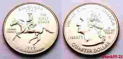 USA 25 CENTS 1 QUARTER 1999 D DELAWARE KOŃ UNC