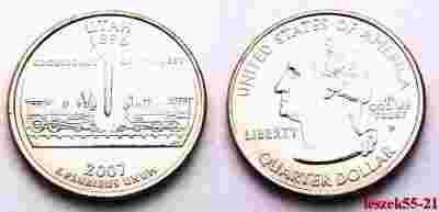 USA 25 CENTS 1 QUARTER 2007 P UTAH POCIĄG UNC