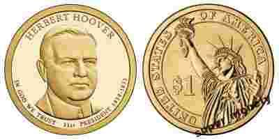 Description:  Features an image of Herbert Hoover with the inscriptions HERBERT HOOVER, IN GOD WE TRUST, 31st PRESIDENT and 1929 – 1933.