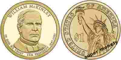 Description: Features an image of William McKinley with the inscriptions WILLIAM MCKINLEY, IN GOD WE TRUST, 25th PRESIDENT and 1897 - 1901.