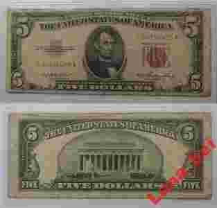 USA 5 dolarów 1953 * STAR * Red Seal Five Dollars