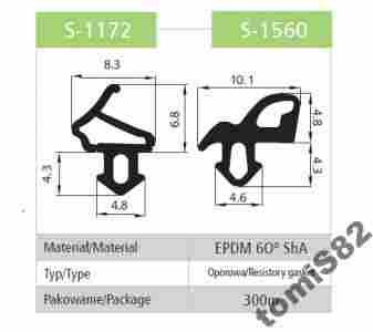 Przedmiotem aukcji jest uszczelka EPDM S-1172 i S-1560 do okien PCV Aluplast