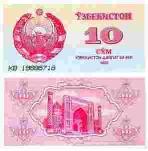 Uzbekistan 10 Sum P-64 1992 stan I UNC