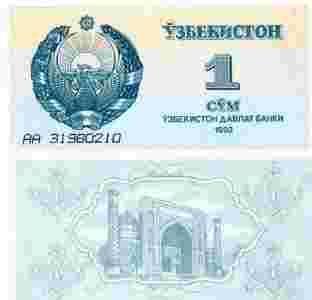 Uzbekistan 1 Sum P-61 1992 stan I UNC