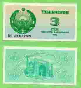 Uzbekistan 3 Sum 1992 P62a Stan I (UNC)