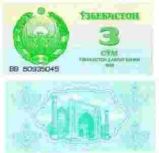Uzbekistan 3 Sum P-62 1992 stan I UNC