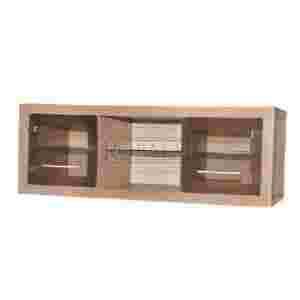 Szafka posiada 2 przeszklonych drzwi oraz w środkowej części wnękę z jedną półka.