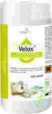 przed procesem sterylizacji oraz protez i wycisków silikonowych. Preparat nie zawiera aldehydu i fenolu dzięki czemu nie odbarwia dezynfekowanych powierzchni. Posiada przyjemny cytrynowy zapach. Chusteczki nasączone preparatem Velox Spray. Produkty uzyskały pozytywne opinie: Centrum Zdrowia Dziecka oraz firmy Famed w zakresie tolerancji materiałowej na tworzywo ABS i materiały obiciowe.
