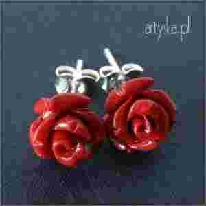 VENA KOLCZYKI RÓŻA KORAL 10 mm SZTYFT SREBRO RED