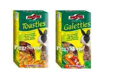 Prestige Snack Galetties to smaczne małe ciasteczka dla wszystkich gryzoni. Te pobudzające przysmaki, oparte na zbożach i pięciu różnych świeżych warzywach stymulują kondycję, zwiększają witalność oraz wprowadzają urozmaicenie do codziennej diety.
