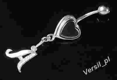 VERSIL- kolczyk pępek stal 316 L + literka SREBRO