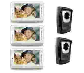Rewelacyjny BEZPRZEWODOWY videodomofon z trzema dużymi, dotykowymi, kolorowymi 7-calowymi monitorami LCD i dwiema kamerami. Panel LCD jest bardzo cienki, ma tylko 2,5 cm, bardzo dobre parametry oraz atrakcyjny wygląd.