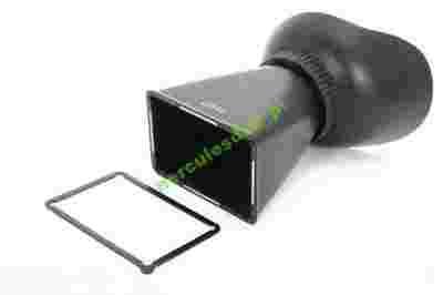 Obraz na wyświetlaczu 3” jest jasny i bardzo wyraźny , a szkło powiększające sprawia że obraz na wyświetlaczu wydaje się dużo większy i wyraźniejszy .Duża elastyczna muszla oczna wykonana z miękkiego tworzywa gumowego zapewnia doskonałe zaciemnienie wewnątrz wizjera w każdych warunkach co znacznie poprawia efekt doskonałej jakości obrazu wyświetlanego przez LCD aparatu.