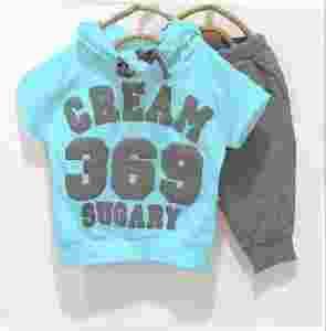 Bluza z krótkim rękawkiem, z kapturem oraz z dużymi napisami wraz z elementami wyszywanymi w kontrastowym kolorze szarym. Krótkie spodenki w kolorze szarym idealnie pasują i nawiązują do bluzki.