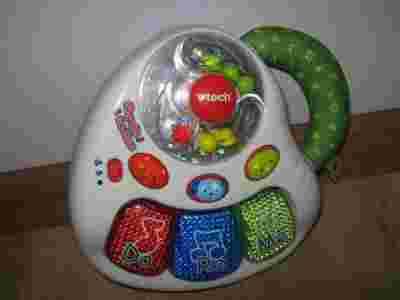 Muzyczkę uruchamia koło z kolorowymi kuleczkami , kiedy jest obracane.