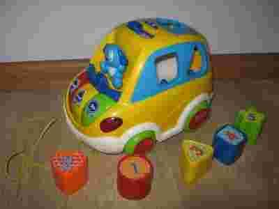 Włóż klocek pasujący do odpowiedniego kształtu w samochodziku,