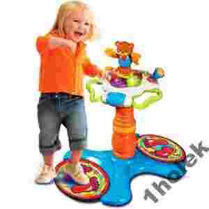 Tryb stojący ćwiczy siłę mięśni dziecka jednocześnie zajmując je rożnymi zabawami. Zabawka dostarcza wielu bodźców stymulujących rozwój dziecka w szerokim zakresie: - rozwój zmysłów, - motoryki, - koordynacji wzrokowo - ruchowej, - rozwój zdolności poznawczych (myślenie przyczynowo - skutkowe, świadomość stałości przedmiotu) oraz emocji, takich jak: pewność siebie, koncentracja i motywacja. Zabawka w języku angielskim, dzięki której maluch od najmłodszych lat oswaja się z tym językiem. Poznaje go w sposób naturalny i ciekawy, co w przyszłości z pewnością zaowocuje jego łatwiejszą nauką. Już teraz może nauczyć się wielu słówek, zwrotów i piosenek. Podczas wciskania poszczególnych przycisków dziecko usłyszy (w zależności od wybranej funkcji) nazwy kolorów, zwierząt, instrumentów, piosenki i melodie.