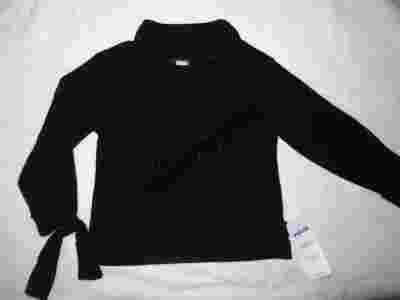 Golf w kolorze czarnym ze srebrnymi, połyskującymi drobinkami. Golfik nie przylegający, luźno układający się przy szyjce, rękawki ozdobnie zakończone - troczki można dowolnie wiązać.