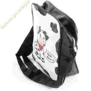 Przedmiotem aukcji jest DZIEWCZĘCA TORBA firmy WÓJCIK W KOLORZE CZARNYM z motywem krówki. Zapinana na zamek - regulowana długość paska . Mała kieszonka na zamek z tyłu torby, jak i w środku torby na tylnej ściance. Mieści A4.