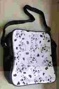 Przedmiotem aukcji jest DZIEWCZĘCA TORBA firmy WÓJCIK W KOLORZE CZARNYM z motywem krówek na białym tle. Zapinana na zamek - regulowana długość paska . Mała kieszonka na zamek z tyłu torby, jak i w środku torby na tylnej ściance. Mieści A4.