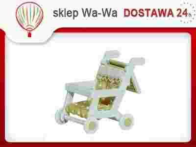 Wózek dziecięcy dla figurek Sylvanian Families od FLAIR. Unikalna, piękna kolekcja zwierzątek oraz całego wyposażenia ich domów, ogrodów i miasteczek. Aukcja dotyczy wyjątkowego wózka dla najmłodszych przedstawicieli tej kolekcji. Wózek posiada ruchomy daszek. Całość w kolorze biało-żółtym z kropkami. W zestawie nie ma zawartych figurek. Nie nadaje się dla dzieci poniżej 3 roku życia.
