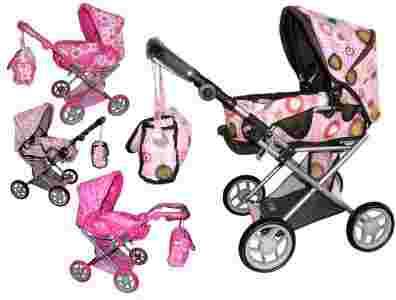 Wózki posiadają regulowane oparcie, podnóżek, rączkę oraz ruchomą budkę. Wewnątrz znajduje sie nosidło z uszami służące do przenoszenia lalki wraz z pościelą. Poandto w środku wózka znajdują sie szelki do zamocowania laki, tak aby nie wypadła w czasie zabawy.