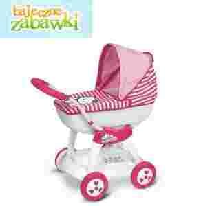 Pojazd jest bardzo stabilny, dzięki dużym kołom zapewni pełen komfort i bezpieczeństwo zabawy. Posiada składaną budkę oraz tapicerkę w śliczne różowe paski. Pod wózkiem znajduje się koszyczek, w którym Twoja córeczka może mieć zawsze przy sobie wszystkie akcesoria potrzebne małej mamie.