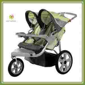 Take a jog or a stroll with baby. The InStep Safari Double Jogging Stroller is made for the active parent and provides features that keep the little one comfortable like pneumatic, high-performance tires that ensure a smooth ride. Dual trigger folding mechanism and built-in carrying handles provide uncompromising safety when folding and transporting the stroller.