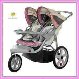 Take a jog or a stroll with baby. The InStep Safari Double Jogging Stroller is made for the active parent and provides features that keep the little one comfortable like pneumatic, high-performance tires that ensure a smooth ride. Dual trigger folding mechanism and built-in carrying handles provide uncompromising safety when folding and transporting the stroller.