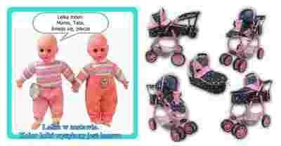 WÓZEK Z LALKĄ MODEL 8 F. Z REG. RĄCZKĄ+TORBA/9662