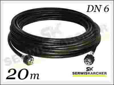 Wąż - przedłużka wysokocisnieniowa o długości 20m i średnicy DN6, pasuje do myjek ciśnieniowych firmy KARCHER z serii K 2-7. Wąż w oplocie nylonowym, jest elastyczny i wytrzymał a jego końcówki zostały trwale i precyzyjnie zakute z obu stron standardową nakrętką M22x1,5.
