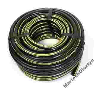 I warstwa - wewnętrzna z czarnego PVC odporna na UV i osadzanie się glonów w wężu. II warstwa - oplot krzyżowy wykonany z włókna syntetycznego. III warstwa - zewnętrzna z miękkiego PVC w kolorze czarnym, z dwoma żółtymi paskami.