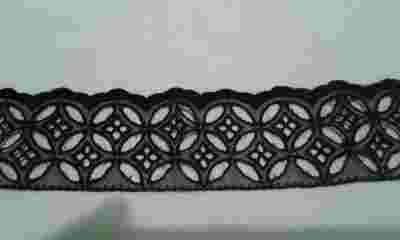 wąski czarny haft na bawełnie