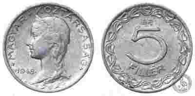 Węgry - moneta - 5 Filler 1948 - RZADKA