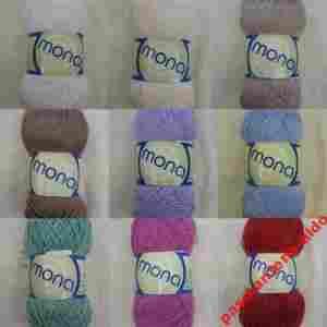 MONA to włóczka akrylowa o chwycie bawełnianym. Jest cienka, gładka, połyskliwa i bardzo miła w dotyku.