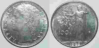 WŁOCHY- 100 LIRA 1992 r moneta nr 1