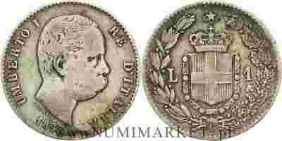 Włochy, 1 lira, 1887 rok, M, Ag