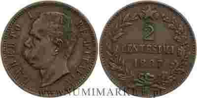 Włochy, 2 centesimi, 1897 rok, R