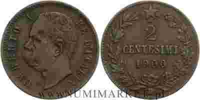 Włochy, 2 centesimi, 1900 rok, R