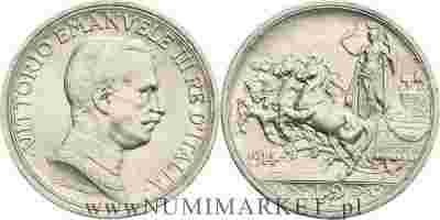 Włochy, 2 liry, 1914 rok, R, Ag