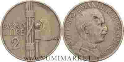 Włochy, 2 liry, 1926 rok, R, Rzadki rocznik