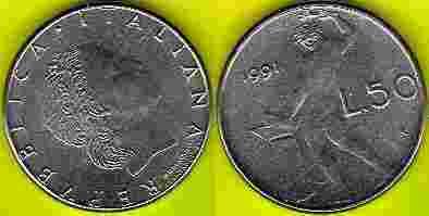 WŁOCHY 50 Lira 1991 r.