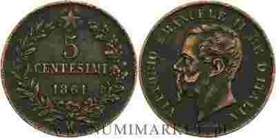 Włochy, 5 centesimi, 1861 rok, M