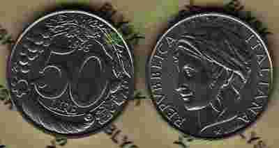 WŁOCHY /KM-183/ 50 LIRÓW 1996 Winogrona-Roślinki