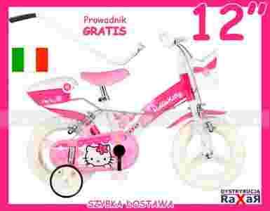 Włoski ROWEREK 12 HELLO KITTY Rower + prowadnik