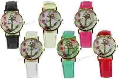 W03 ZEGAREK skórzany RETRO kwiaty ZŁOTY pasek
