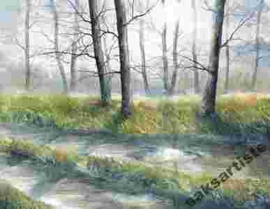 W chłodach poranka - akwarela