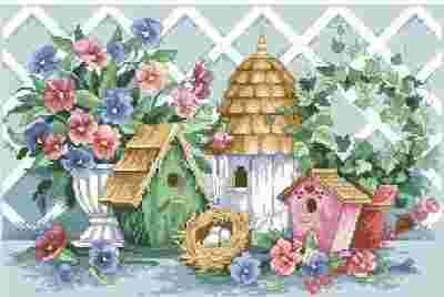 W letnim ogrodzie schemat lub haft krzyżykowy
